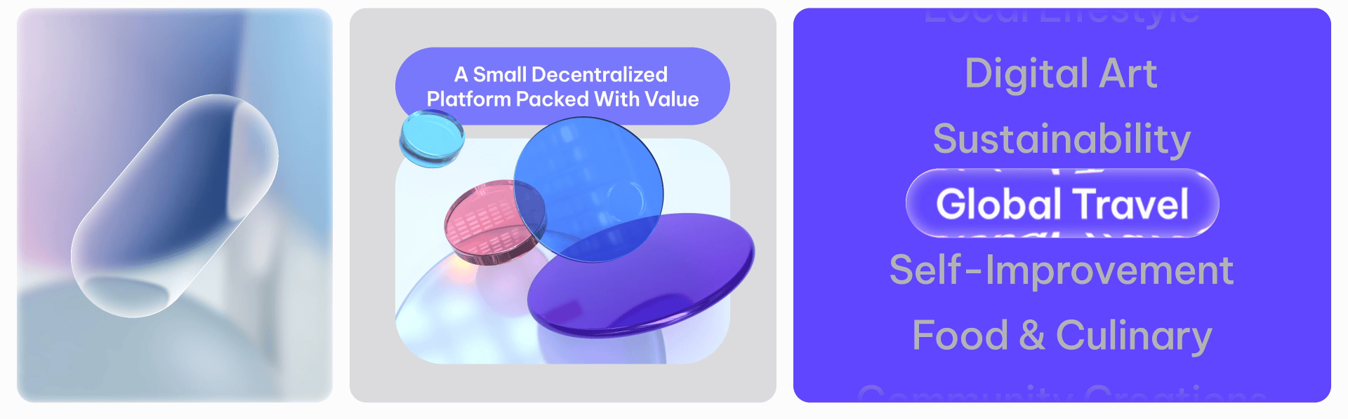 Qupid's key visuals contain various forms of content and DeFi information using capsules It's a flexible container that can be connected and expanded. As a result, the graphics system's basic structure is based on a format in which all content is contained in a container.