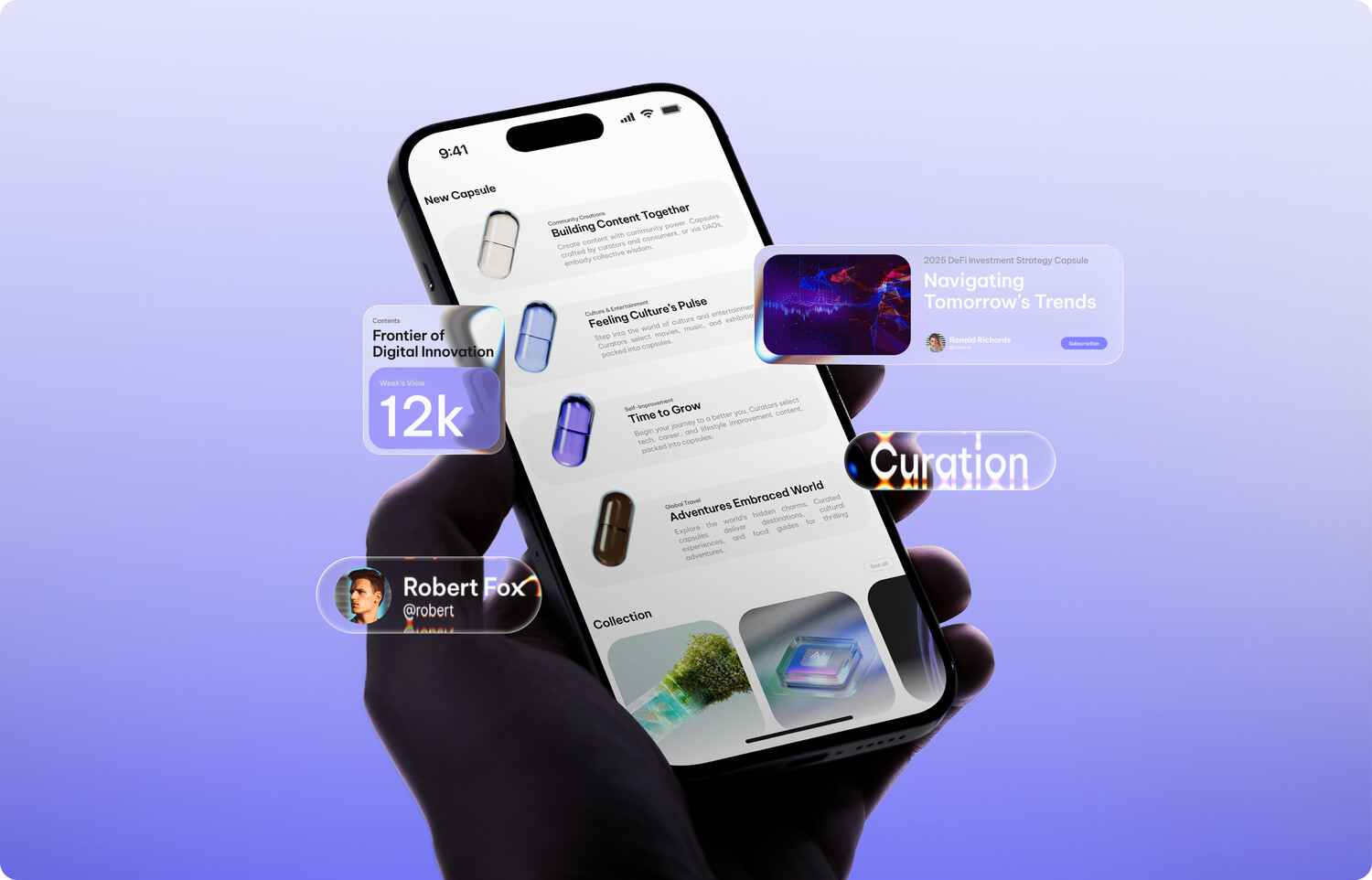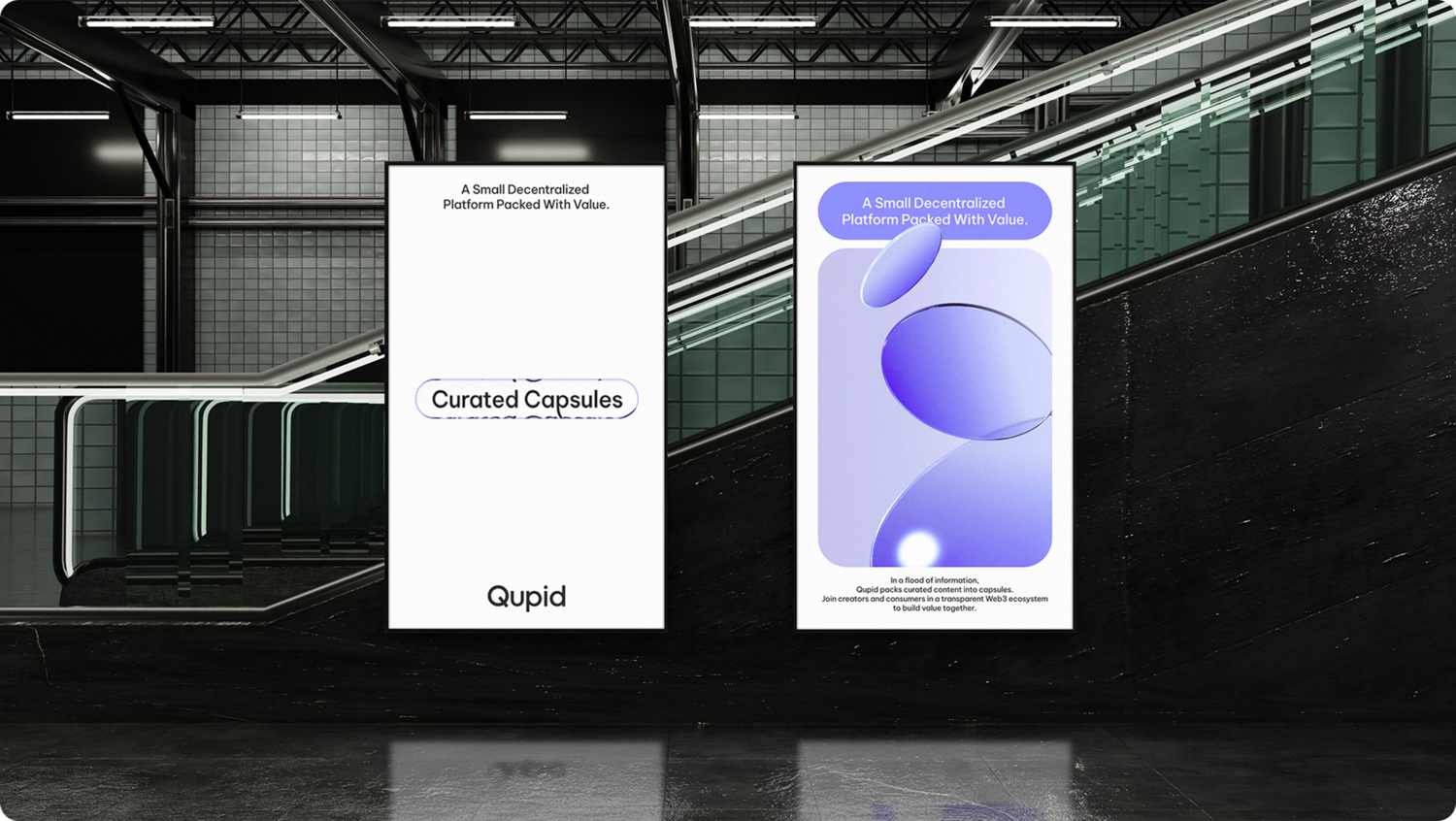 Tom&Nick embodies Qupid's philosophy with the capsule as its brand motif. Like a supplement that appears small but contains countless nutrients, the capsule serves as an essential presence for those seeking quality content amidst an information overload, acting as a medium for exchanging value. Just as a small capsule fills us with health and value, Qupid also offers valuable experiences in Web3. The promise to deliver 'essential value' to users in 'the most efficient form' is why the capsule was chosen as the brand's visual motif.