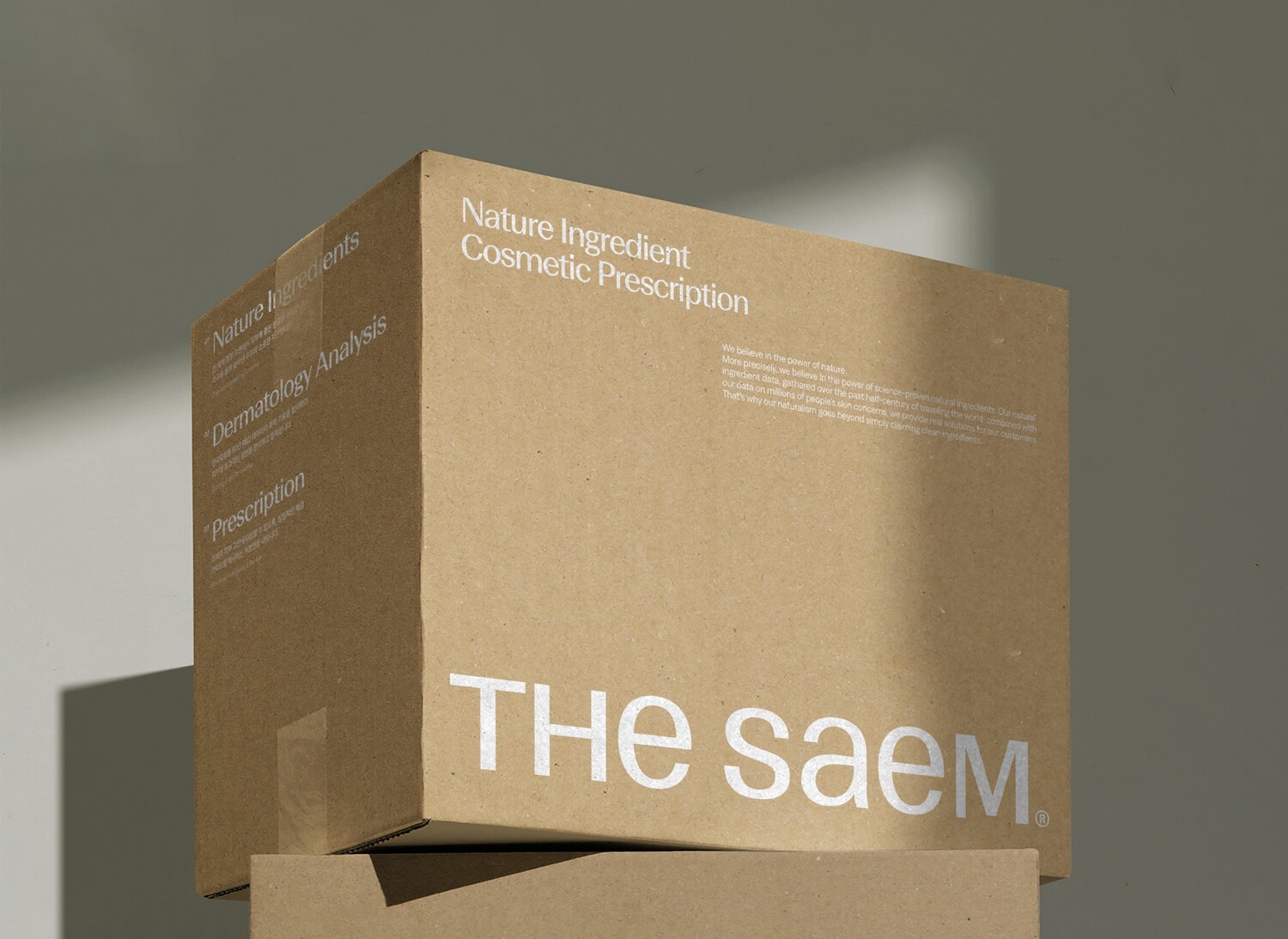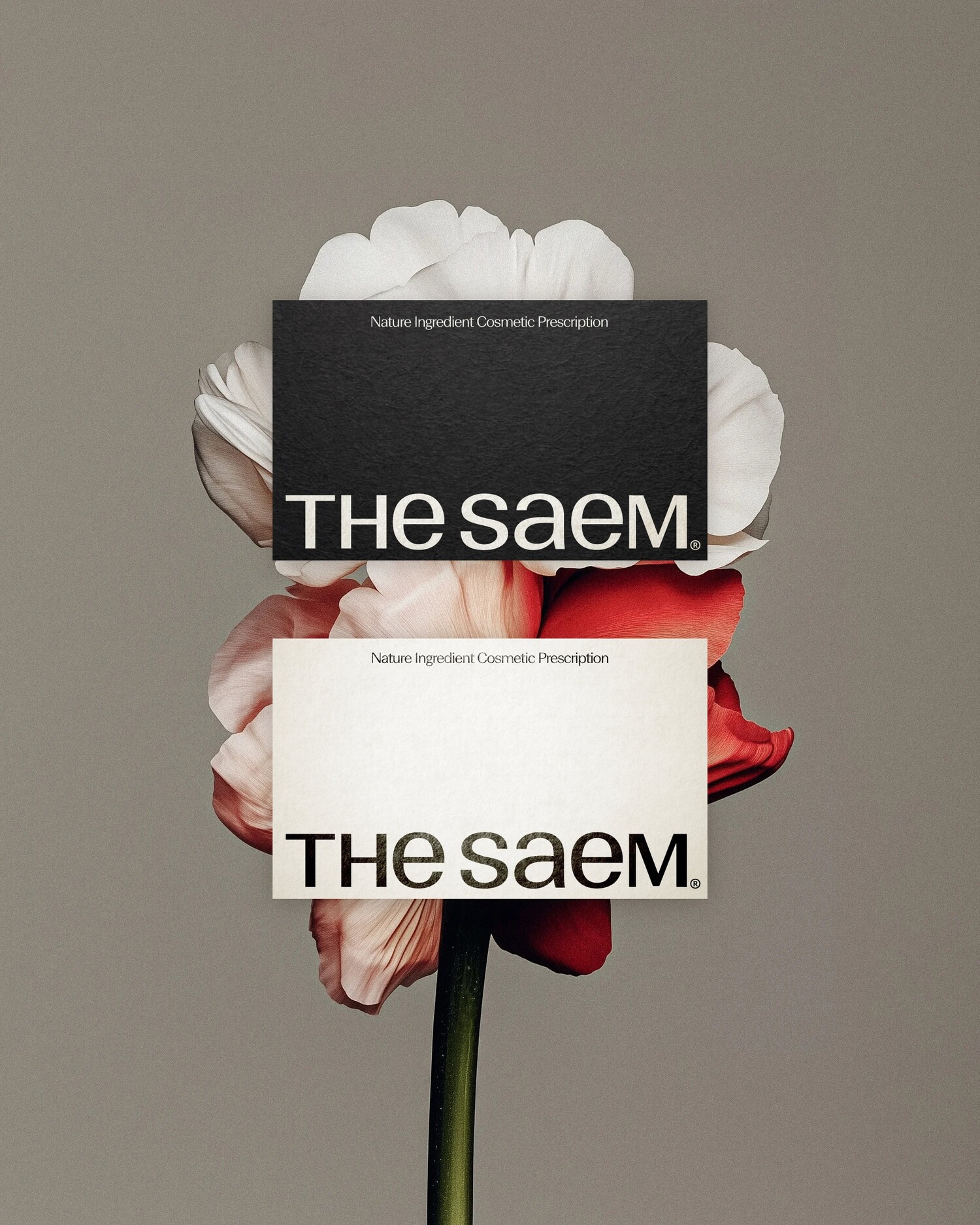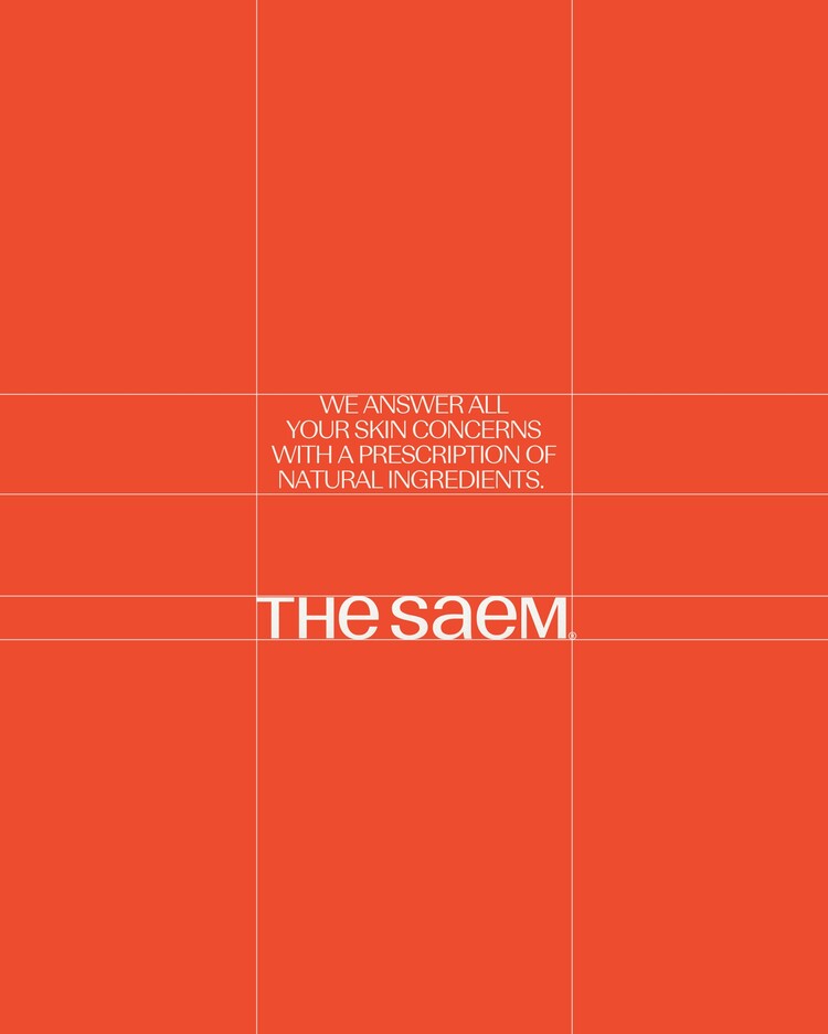 The existing brand mark of THE SAEM was a typeface drawn on a square grid, consisting of a sans serif type separated by a lowercase the and an uppercase SAEM, which was rational but limited the impression of naturalism.
